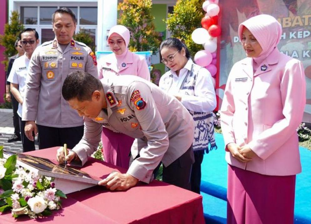 Peresmian jembatan Merah Putih Presisi ditandai dengan penandatangan prasasti jembatan oleh Kapolda Jateng Irjen Pol Ribut Hari Wibowo, Rabu 8 April 2026.